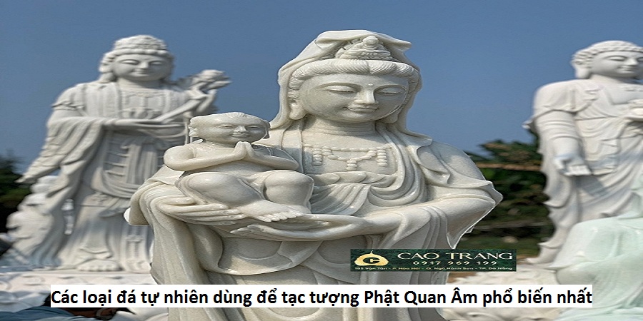 Các loại đá tự nhiên đóng vai trò quan trọng trong việc tạo ra những bức tượng Phật Quan Âm mang tính nghệ thuật và tâm linh cao. Trong số các loại đá được sử dụng, đá cẩm thạch, đá granit, đá bột và đá onyx thường xuất hiện nhất. Mỗi loại đá này không chỉ có vẻ đẹp riêng mà còn có những ứng dụng đặc biệt trong nghệ thuật tạc tượng.